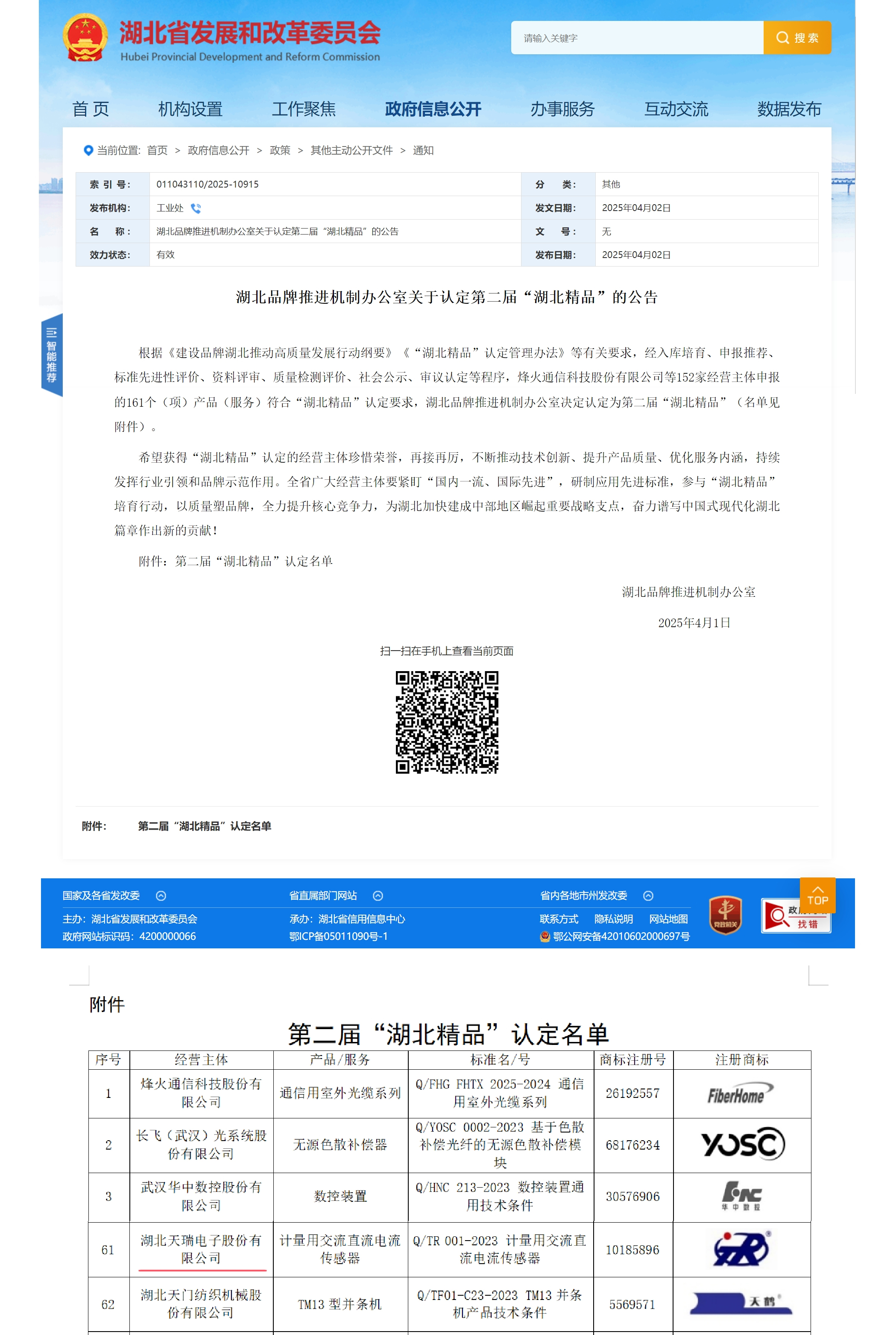 2025年4月2日,天门讯——近日,湖北省发展和改革委员会官网发布《湖北品牌推进机制办公室关于认定第二届“湖北精品”的公告》,湖北天瑞电子股份有限公司(以下简称“天瑞电子(837601.NQ)”)自主研发的“计量用交流直流电流传感器”凭借其卓越的技术创新性、产品可靠性和市场竞争力,成功入选第二届“湖北精品”名单。这是继公司多项产品获国家级、省级荣誉后,在品牌建设和质量提升领域取得的又一重要突破。